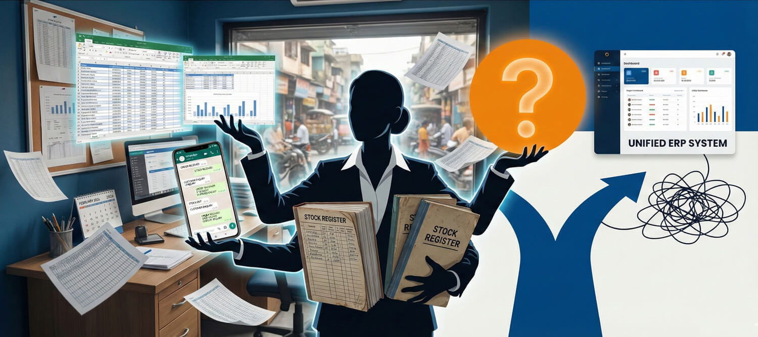 A distribution company managed operations on Excel for years. As orders increased and multiple warehouses were added, stock disputes became routine. Reporting required late-night reconciliation.